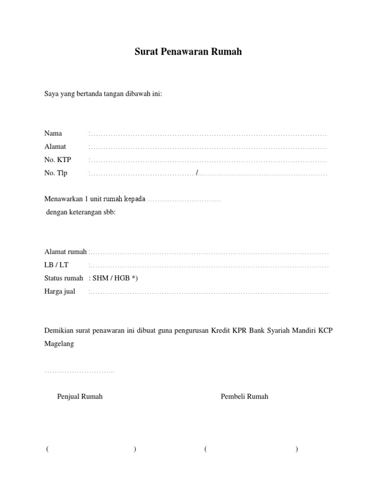 Contoh Surat Penawaran Rumah Kerjasama Kpr 2019 Kumpulan