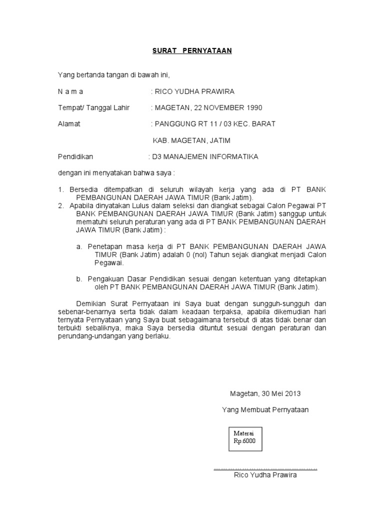 Berikut ini anda bisa lansung copypaste contoh surat pernyataan kesanggupan penempatan kerja di luar kota atau daerah ini untuk kelengkapan administrasi anda. 3 3 mendukung 1 1 menolak. Dalam sebuah struktur didalam organisasi perusahaan ada kalanya kita ditempatkan berada diatas atau bahkan turun jabatan. Contoh surat penempatan kerja surat penempatan kerjascribd is the world s largest social reading and publishing site 5 5 2 contoh surat penempatan kerja surat pernyataan bersedia demikianlah penjelasan tentang teknik penulisan dan contoh surat pernyataan penempatan kerja semoga bermanfaat jika anda suka artikel ini mohon like. Simak panduan rahasia cara membuat kumpulan koleksi contoh surat pernyataan penempatan kerja terbaru yang paling baik resmi serta sopan ada disini. Attribution non commercial by nc format tersedia.