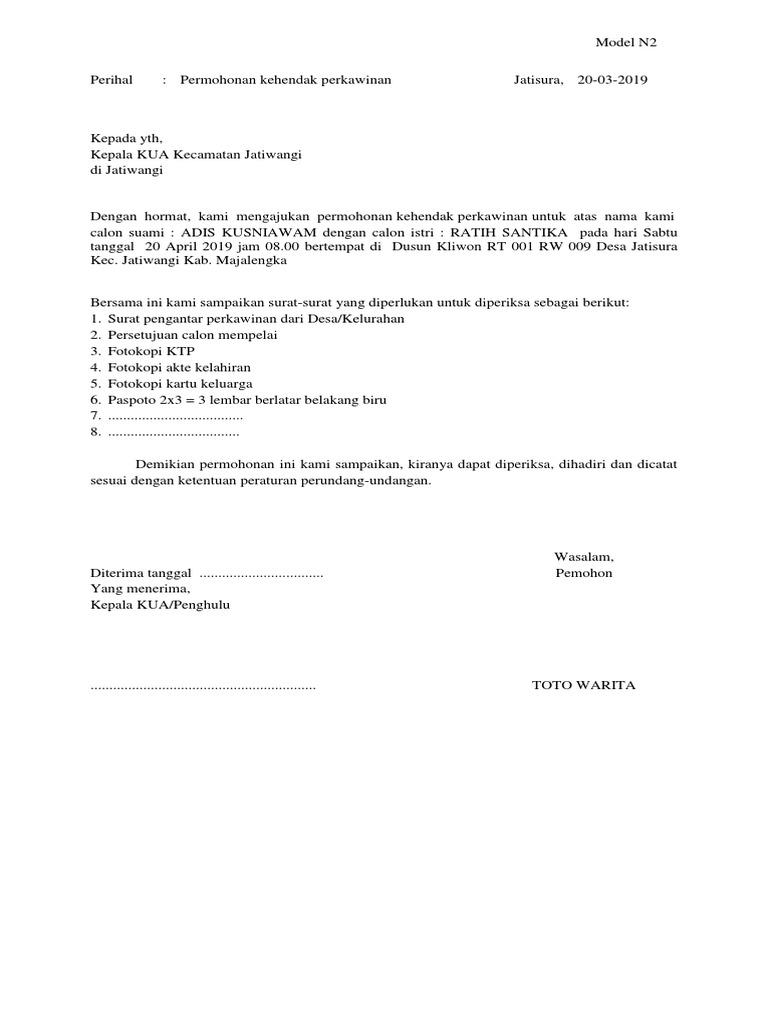 Ada tuhan yang mengatur jodoh. Untuk mengajukan pembatalan perkawinan tersebut pihak pihak yang merasa dirugikan dapat mengajukan permohonan pembatalan perkawinan. 15 contoh surat pengajuan permohonan izin bantuan dan kerjasama seiring dengan perkembangan zaman dan kemajuan teknologi yang semakin canggih penggunaan surat sebagai media komunikasi pun memang semakin menipis. Model n6 surat keterangan kematian. Benar benar berbeda keadaanya dengan dulu dimana semua orang masih hanya mengandalkan surat jika ingin berkomunikasi jarak jauh.