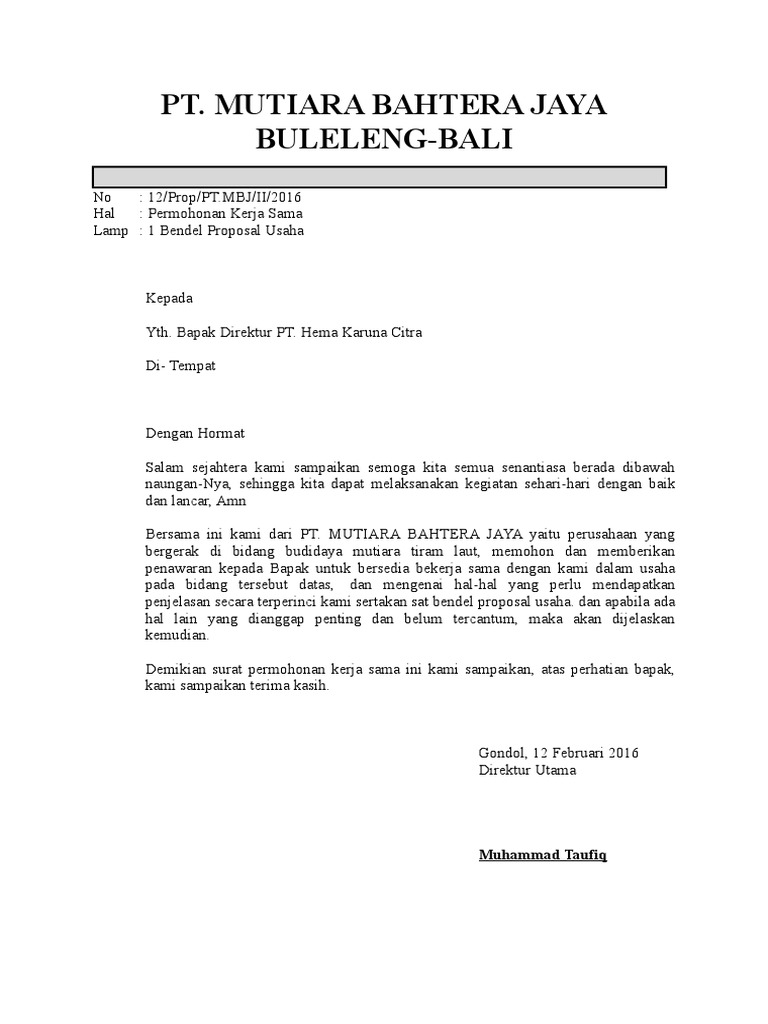 Contoh surat pengantar proposal kerjasama. Pada surat ini anda menjelaskan bahwa anda memiliki rancangan kerjasama usaha yang akan dijelaskan melalui proposal kerjasama usaha. Surat permohonan kerjasama format dan contoh surat kerjasama kegiatan produk surat permohonan kerjasama merupakan sebuah surat resmi yang dibuat untuk menawarkan sebuah permintaan atau permohonan kerjasama kepada seseorang atau perusahaan agar mereka mau menerima tawaran yang kita berikan. 14 contoh surat perjanjian kerjasama terlengkap yang pernah ada. Contoh surat pengantar proposal kerjasama suatu perusahaan tentu harus menjalin kerjasama dengan perusahaan lainnya agar bisa berkembang dengan lebih cepat. Surat pengantar proposal masih di waktu yang sama kali ini kami masih membahas informasi mengenai surat pengantar. Contoh surat pengantar proposal sebagian besar dari anda tentu sudah tau atau setidaknya pernah mendengar mengenai kata proposal.