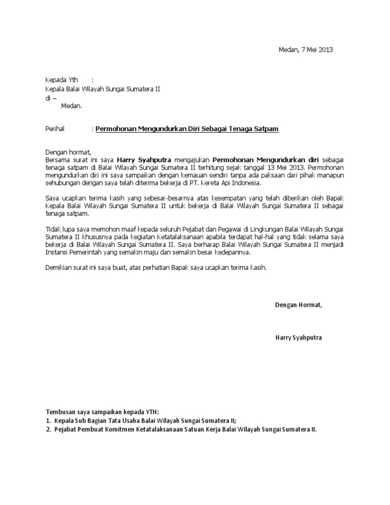 Mohon untuk dimaklumi dan besar harapan saya agar permohonan ini dapat diterima. Contoh surat pengunduran diri adalah jenis surat yang banyak diperlukan saat ini baik di kantor ia bekerja maupun di sekolah sekolah juga organisasi tempat dia berkecimpung selama ini biasanya surat ini dibuat ketika akan mengembangkan kemampuan dan ilmunya di tempat lain atau juga bisa jadi karena sudah tidak cocok dengan tempatnya yang sekarang dan ingin mencari suasana baru. Gading serpong blok a4 no. Dengan hormat bersama surat ini saya rendy sanjaya selaku satpamsecurity di bank bumi arta mengajukan permohonan untuk mengundurkan diri. Makassar 11 juni 2018.