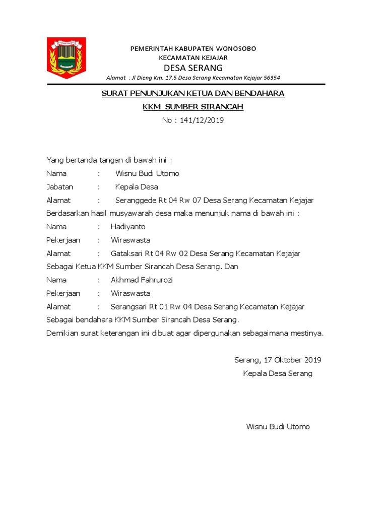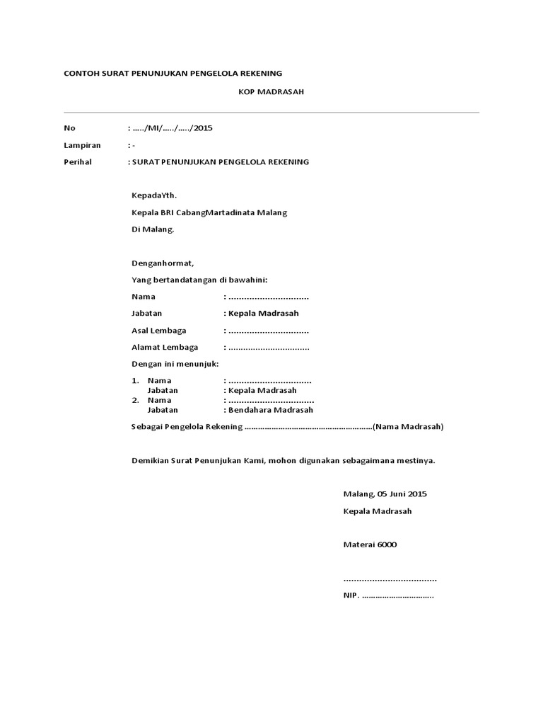 N i p. Untuk dapat mendownload contoh surat penunjukkan dalam format doc silahkan anda klik link yang tersedia berikut ini. Contoh surat penunjukan bendahara. Surat keputusan diperlukan bilamana seorang pemimpin atau atasan membuat keputusan di suatu pihak atau kelompok. Berikut contoh surat penunjukan bendahara dana bantuan pemerintah yang dapat dijadikan pedoman dan pembuatan di sekolah. Contoh surat pengadaan tenaga kerja ini akan sangat membantu akademisi dalam mencari referensi dokumen dan surat keputusan untuk bendahara bos.