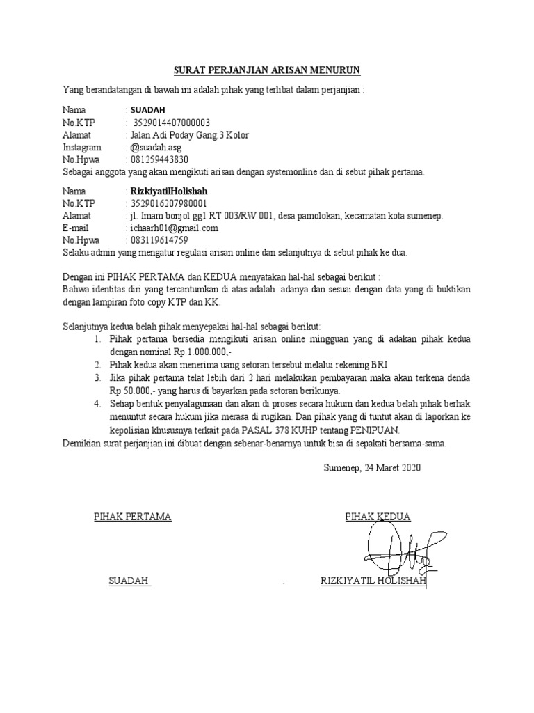Contoh surat perjanjian arisan online. Yang bertanda tangan dibawah ini. Contoh surat perjanjian kontrak villa proses kontrak rumah harus melalui prosedur tertentu. Membuat surat perjanjian di atas materai akan membayar japo tepat waktu dan siap di penjarakan apabila kabur 4. Peraturan dan syarat ikut arisan ini. Namun agar lebih terstruktur dan memiliki bukti fisik maka kedua belah pihak biasanya akan menggunakan surat perjanjian. Indah osiana faujiah no.
