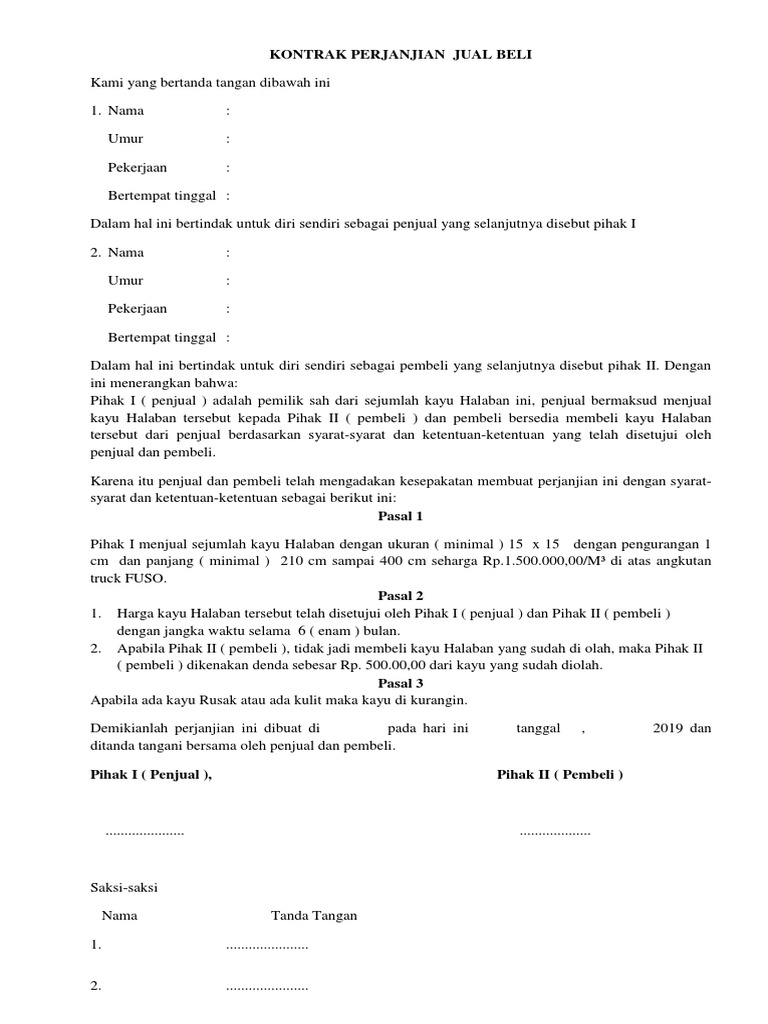 Contoh surat perjanjian jual beli kayu sengon. Pasal pasal itu tidak memiliki batasan pada segi jumlah. Sebaiknya surat perjanjian kerjasama dibuat di atas kertas yang memiliki kop perusahaan pihak pertama materai dibuat pada tanda tangan pihak pertama. Contoh surat perjanjian jual beli adalah surat yang dibuat oleh pihakpihak yang ingin melakukan transaksi jual beli harta benda berharga dengan nilai harga yang cukup besar seperti kendaraan bangunan tanah perhiasan dan barangbarang berharga lainnya. Jual log kayu sengon selamat siang saya mempunyai rekanan yang ingin menjual dan memasok kayu sengon secara rutin dari kebun di daerah jawa barat. Contoh surat jual beli tanah. Status tanah adalah tanah girik dengan akta jual beli di notaries.