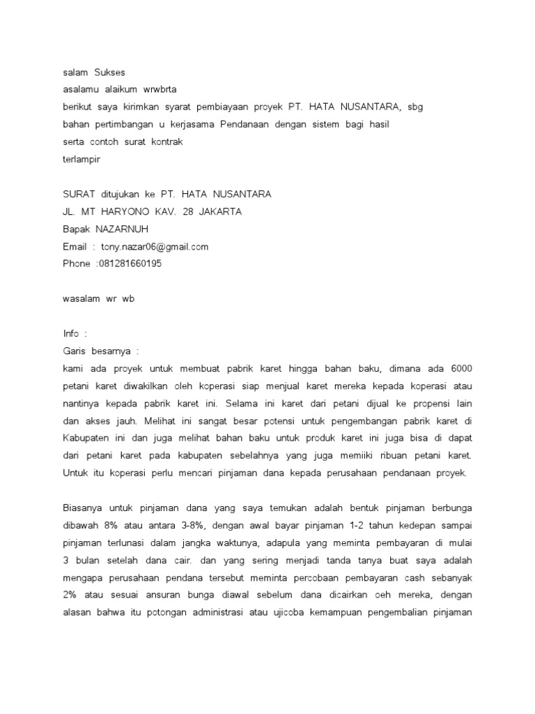 Contoh Surat Perjanjian Kerjasama Pendanaan Proyek Pdf