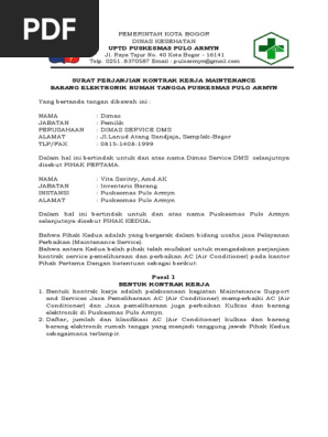 Pdf Surat Perjanjian Kontrak Kerja Service Dan Perawatan