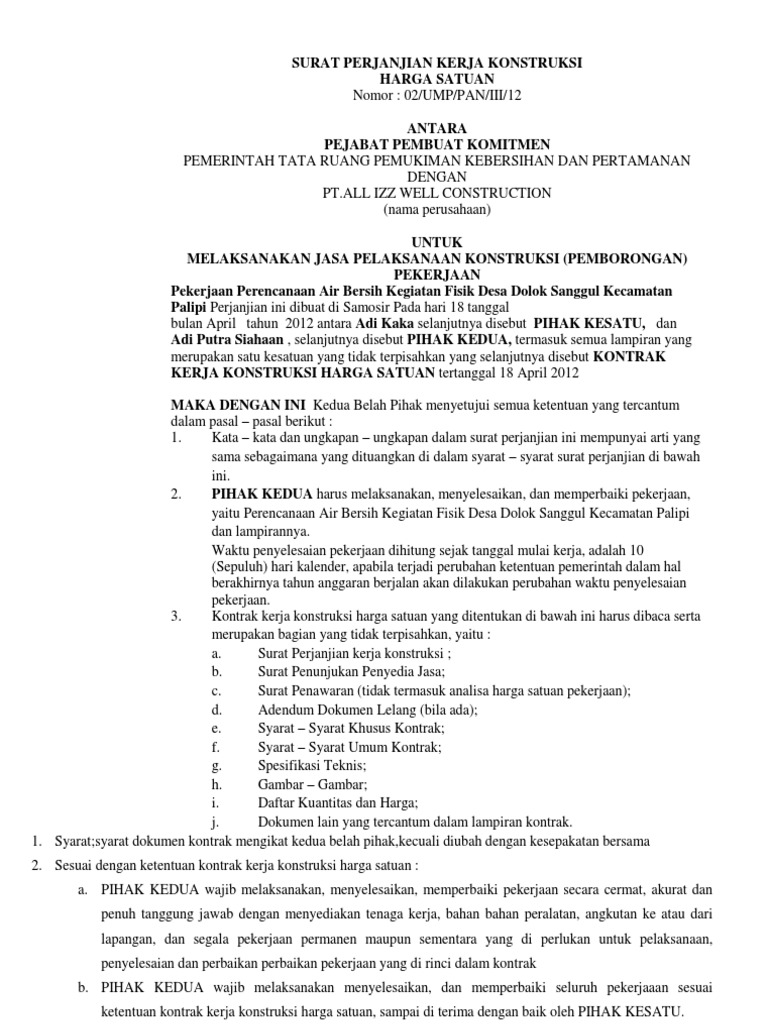 Surat kontrak perjanjian pekerjaan borongan 1. 339 cibinong bogor selanjutnya disebut pihak pertama. Bertinak sebagai pemilik rumah dan selanjutnya akan di sebut sebagai pihak pertama. Contoh surat kontrak kerja surat kontrak kerja adalah salah satu dokumen penting yang dimiliki oleh seorang karyawan pegawai di sebuah perusahaan. Contoh surat perjanjian kontrak kerja kontraktor. Terimakasih telah berkunjung dan jangan lupa untuk membaca artikel lainnya.