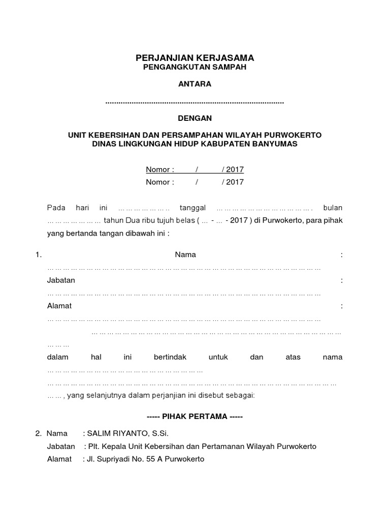 Memerlukan jasa pengangkutan dan pengolahan limbah 33. Word file doc draf perjanjian jasa pengangkutan barang ini berisi draf perjanjian yang mengikat kerja sama antara pemilik barang dengan pengangkut barang untuk melakukan pekerjaan jasa pengangkutan barang melalui jalur darat. Contoh surat pemberitahuan edaran kebersihan lingkungan surat edaran pemeberitahuan kebersihan lingkungan ini bisa ditujukan kepada warga atau sesuai dengan kebutuhan misalnya warga sekitar sekolah tempat ibadah maupun lingkungan dinas lainnya. Namun untuk kеgiаtаn уаng bеrѕifаt fоrmаl ѕереrti sekolah kеrjаѕаmа bisnis аntаr реruѕаhааn osis pastinya mеnggunаkаn ѕurаt rеѕmi kаrеnа jikа hаnуа. Divanza nirmala sejahtera nomor. Contoh surat perjanjian kerja sama di atas memiliki berbagai format yang dapat anda ambil sesuai dengan kebutuhan anda.