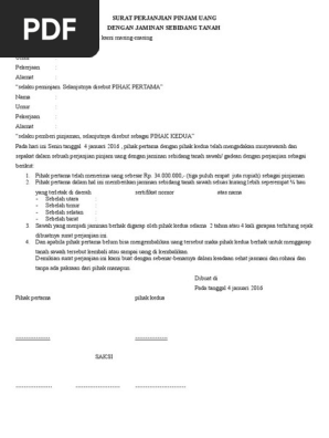 Hindari risiko dengan surat perjanjian utang. 339 cibinong bogor berikut dengan segala hak hak dan kepentingan kepentingan di atas bidang tanah tersebut. Contoh surat perjanjian hutang piutang dengan jaminan sertifikat tanah surat perjanjian sangat diperlukan sebagai bukti otentik jika 2 dua atau lebih orang masuk ke dalam kesepakatan atau kesepakatan yang baik di bidang bisnis dan hal hal lain di mana mungkin ada perselisihan di masa depan. 15 contoh surat perjanjian hutang yang benar dan terlengkap sebuah perjanjian merupakan kesepakatan yang dibuat oleh dua orang atau dua pihak mengenai sesuatu hal tertentu. Namun agar lebih terstruktur dan memiliki bukti fisik maka kedua belah pihak biasanya akan menggunakan surat perjanjian. Perjanjian pun bisa dibuat dengan cara lisan dan cara tertulis.
