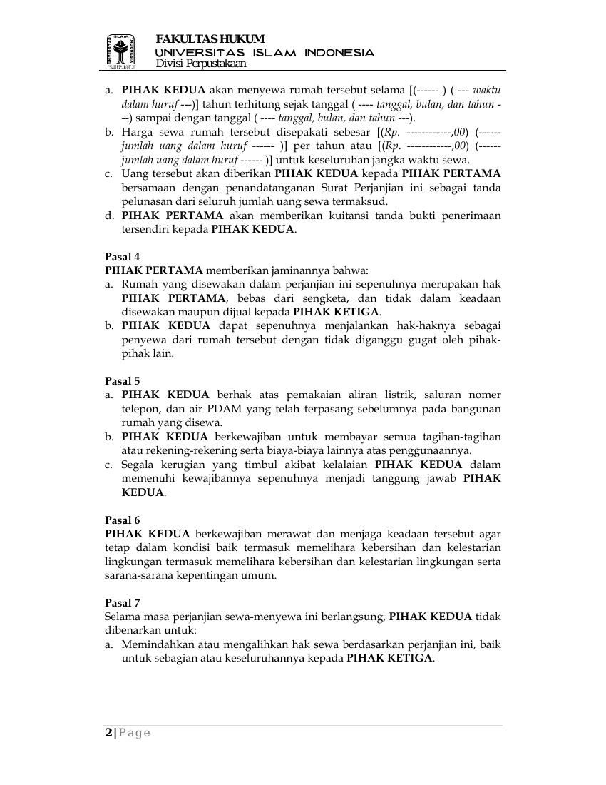 Contoh Surat Perjanjian Kontrak Rumah Atau Sewa Rumah