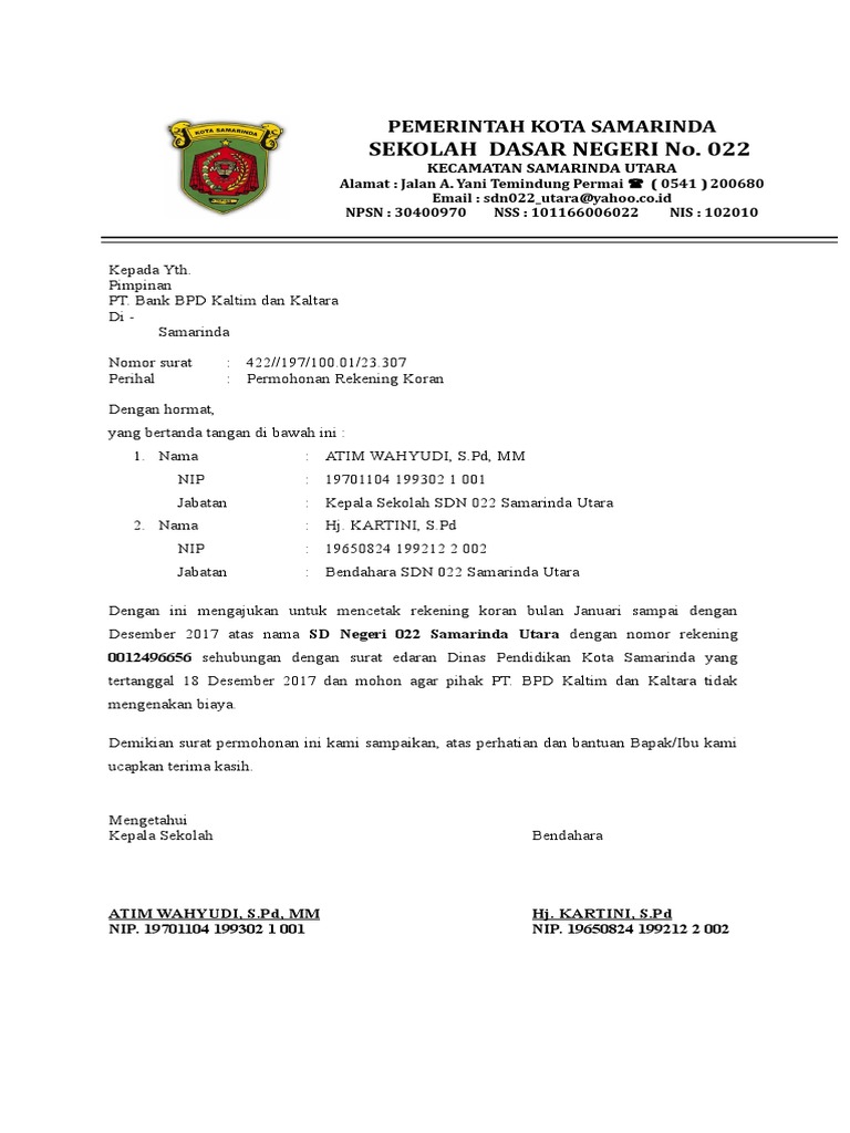 Contoh surat permohonan cetak rekening koran. Jkn upt puskesmas kalibuntu yang beralamat di jl. Xxxxxxxxxxxx an rekening. Di panjaitan km 55 desa kalimukti kecamatan pabedilan kabupaten cirebon guna kepentingan pemeriksaan audit badan pemeriksa keuangan bpk. Bagi anda yang bekerja di bidang pendidikanpemerintahan terutama pengelola keuangan bos pasti tidak asing lagi dengan kata rekening koran ini. 0058957275100 an rekening. Sdn cipangramatan 01 yang beralamat di kp.