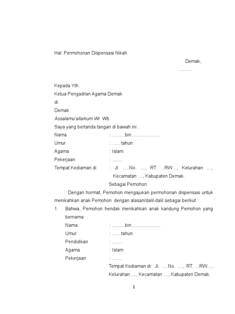 Ketua pengadilan agama kelas ia bandung di jl. Contoh format dispensasi nikah. Contoh surat pernyataan nikah sirih. Contoh surat permohonan dispensasi pernikahan dari kecamatan kua blimbing 1939 tidak ada komentar. Demikianlah contoh surat permohonan dispensasi nikah yang dapat diajukan di pengadilan negeri semoga dapat bermanfaat dan menjadi referensi hukum dalam menghadapi permasalahan hukum. Bandung 27 agustus 2018 perihal.