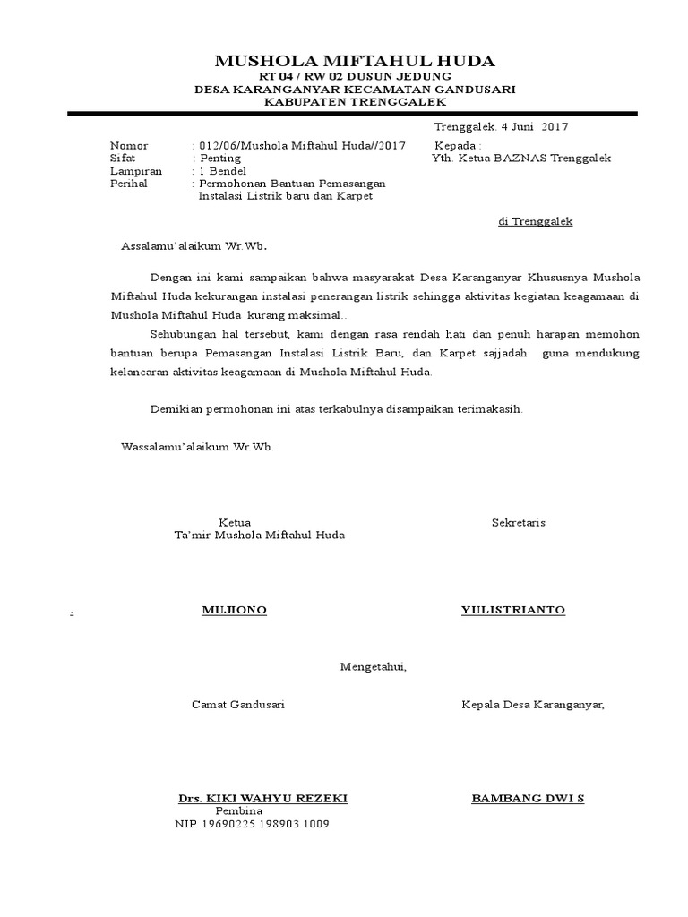 Admin dari blog dapatkan contoh 2019 juga mengumpulkan gambar gambar lainnya terkait contoh surat permohonan pemasangan listrik untuk masjid dibawah ini. Contoh surat permohonan pemasangan listrik pln pasang baru posted by blogger with no comments. Contoh surat permohonan pemasangan rambu rambu jalan sungai baru 24 agustus 2017 no mor. Adapun hal tersebut diusulkan berdasarkan pendataan yang ada di tiap tiap kampung yang belum mempunyai standar llistrik di sarana agama maupun ibadah di desa kami sebagaimana dimaksud dan bantuan tersebut diperuntukan. Pmta ta unggul sejahtera yang berlokasi di desa buding kecamatan ketapa kampit. Contoh surat permohonan pemasangan rambu rambu jalan sungai baru 24 agustus 2017 no mor.