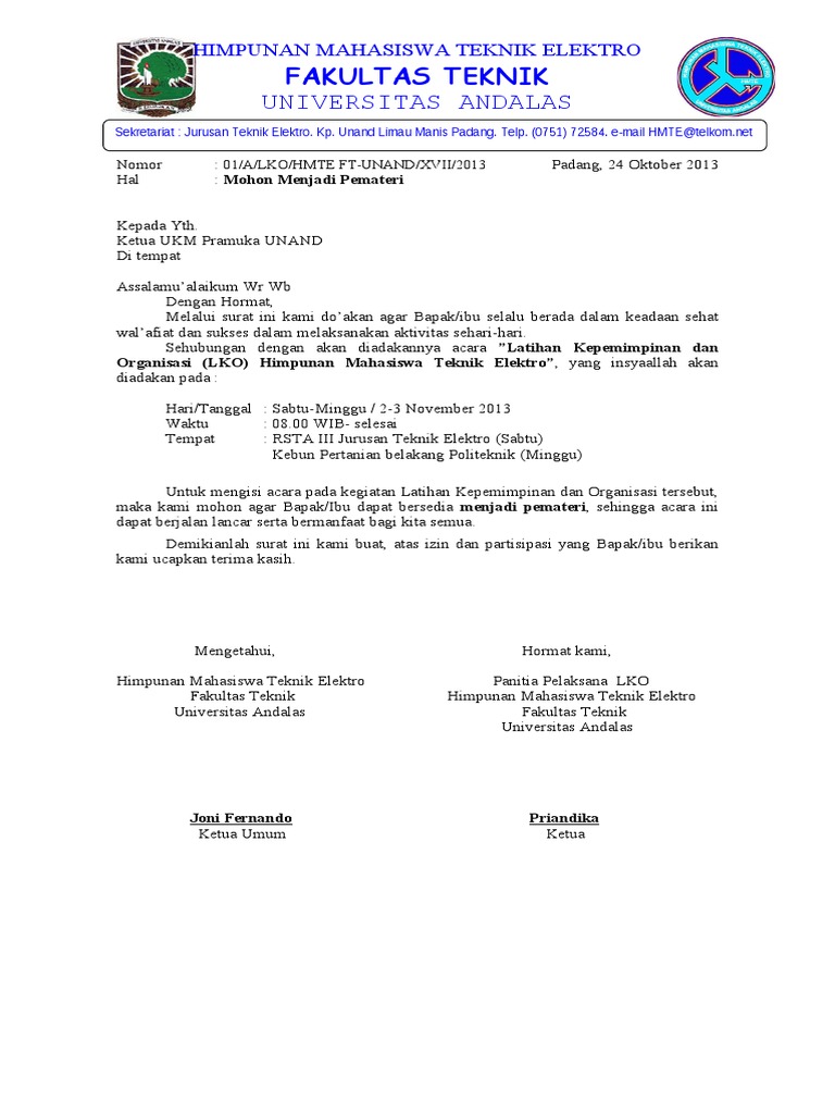Download contoh surat undangan tidak resmi doc. Contoh surat permohonan menjadi pemateri seminar pelatihan acara kegiatan himpunan mahasiswa berikut ini adalah contoh tentang contoh surat permohonan menjadi pemateri seminar pelatihan acara kegiatan himpunan mahasiswa seperti surat contoh yang tertulis di bawah ini. Home surat permohonan 99 contoh surat permohonan pembicara yang resmi 99 contoh surat permohonan pembicara yang resmi surat permohonan pembicara merupakan surat yang bertujuan untuk memohon dan mengundang seseorang untuk menjadi pembicara pada suatu acara kegiatan baik di suatu instansi pemerintahan maupun swasta ataupun organisasi. Contoh surat undangan seminar dan workshop untuk umum serta untuk perusahaan agar menarik perhatian target audiens yang anda rencanakan. Untuk mengundang seorang pembicara maka kita perlu menyampaikan surat undangan untuk menjadi pembicara secara baik.