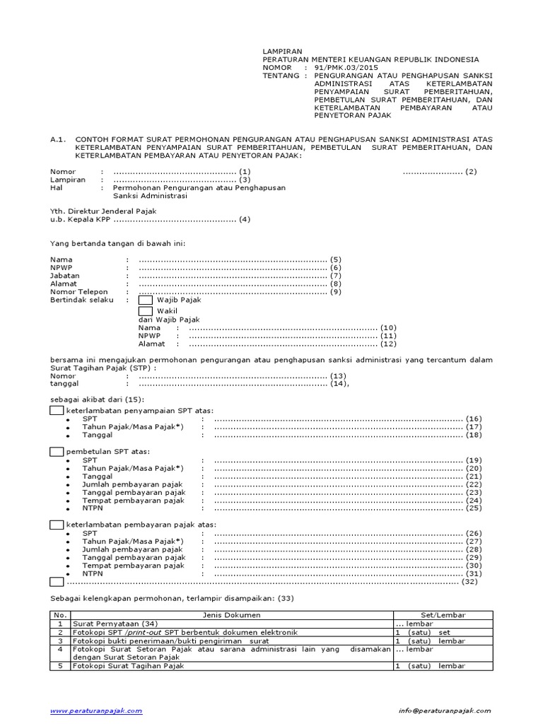 Berikut ini persyaratan untuk mengajukan permohonan penghapusan sanksi pajak dimaksud pmk nomor 29pmk032015. Ariss junior location. 1 satu permohonan untuk 1 satu surat tagihan pajak. Sanksi administrasi dalam stp belum dibayar oleh wajib pajak atau sanksi administrasi dalam stp sudah dibayar sebagian oleh wajib pajak. Dan dalam hal surat permohonan ditandatangani oleh bukan wajib pajak surat permohonan harus dilampiri dengan surat kuasa khusus. Persyaratan mengajukan penghapusan sanksi.