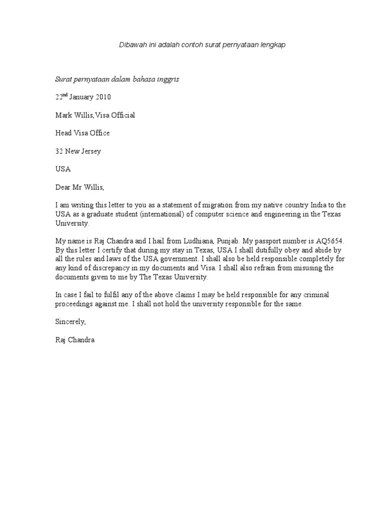 Contoh surat pernyataan bahasa inggris. 15 contoh surat resmi dalam bahasa inggris lengkap dan terbaru seiring dengan perkembangan zaman dan kecanggihan teknologi penggunaan surat juga semakin berkurang belakangan ini. Surat pernyataan diri adalah surat yang menyatakan diri secara pribadi biasanya surat ini digunakan dalam mendaftar sekolah ataupun melamar kerja dan yang lainnya. Contoh surat perjanjian dalam bahasa inggris beserta arti surat merupakan salah satu bentuk alat komunikasi yang bayak digunakan baik secara formal maupun informal. Passport 222333444555 already completed the process to obtain his schemed visa at the embassy of austria located at brass highway street no. 15 contoh surat dalam bahasa inggris paling lengkap jika kita melihat perkembangan zaman dan kecanggihan teknologi sekarang ini maka memang wajar kalau penggunaan surat pribadi sudah semakin menurun. Anda bisa mendownload atau mencetak gambar atau foto contoh surat.