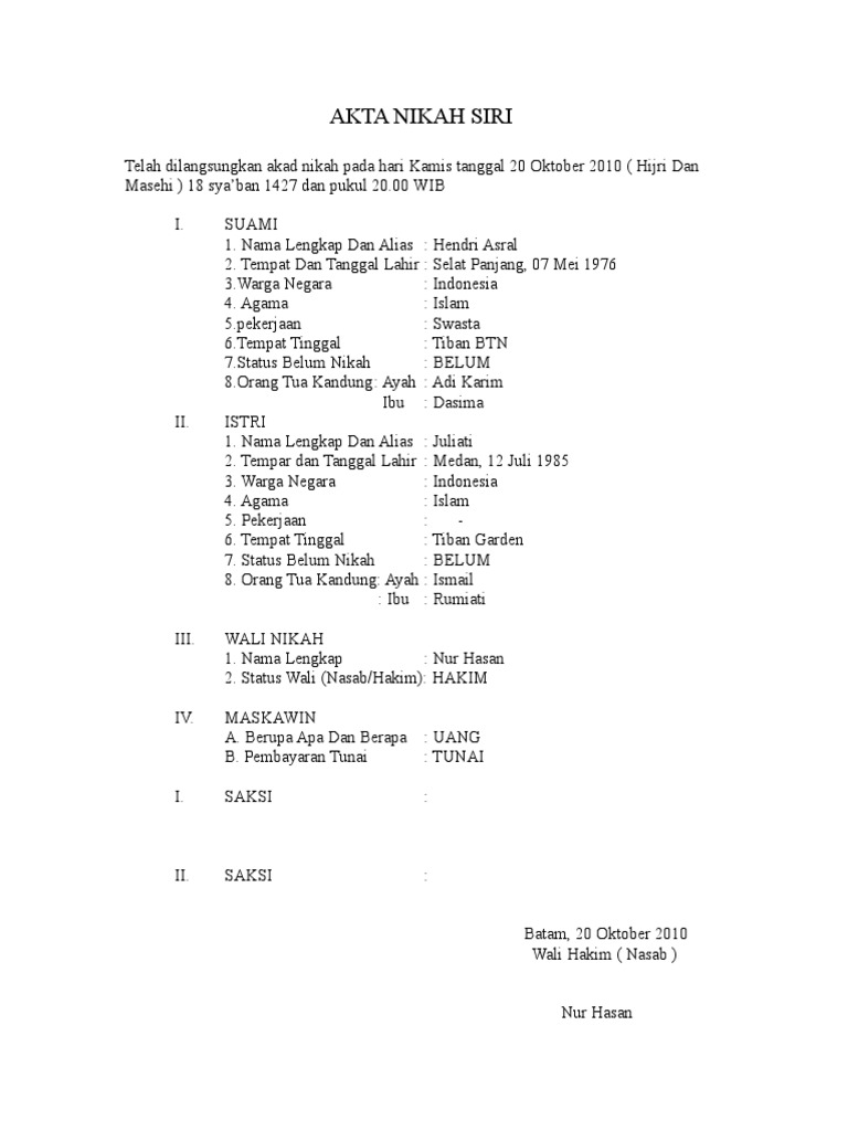 Download contoh surat nikah siri doc itu tadi penjelasan surat nikah siri pada kesempatan kali ini kita sambung lagi dilain kesempatan dengan penjelasan jenis surat lain tentunya. Bantul 2 agustus 1989.