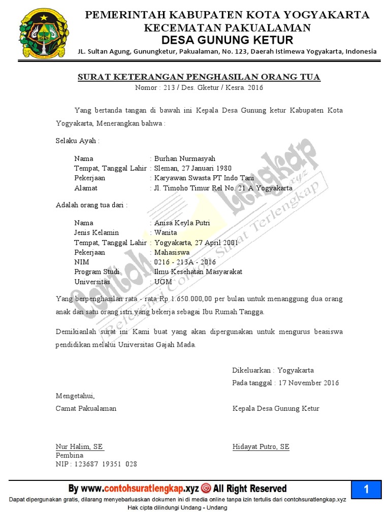 Contoh surat keterangan penghasilan orang tua lengkap lengkap dengan panduan cara membuat surat resmi yang baik. Saya yang bertanda tangan di bawah ini nama. 4 contoh surat keterangan penghasilan karyawan wiraswasta dan orang tua surat keterangan penghasilan di dalamnya berisi tentang rincian penghasilan yang diterimanya. Surat pernyataan penghasilan orang tua pekerjaan non formaltidak tetap contoh format ini diperuntukkan bagi orang tua yang tidak berpenghasilan tetap boleh menggunakan format yang dikeluarkan oleh kepala desalurah setempat yang bertanda tangan dibawah ini. 2 anak dengan surat ini menerangkan bahwa penghasilan per bulan saya adalah. Agus pambudi alamat.