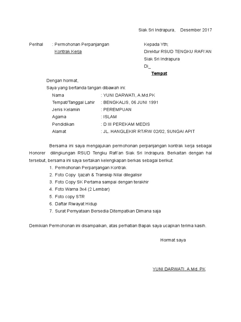1 surat kontrak kerja ini berlaku 1 tahun semenjak ditandatangani oleh pihak i satu dan pihak ii dua pada awal tahun pelajaran sampai dengan akhir tahun pelajaran. Contoh surat permohonan perpanjangan kontrak kerja pegawai honorer contoh surat permohonan perpanjangan kontrak kerja karyawan swasta post date.