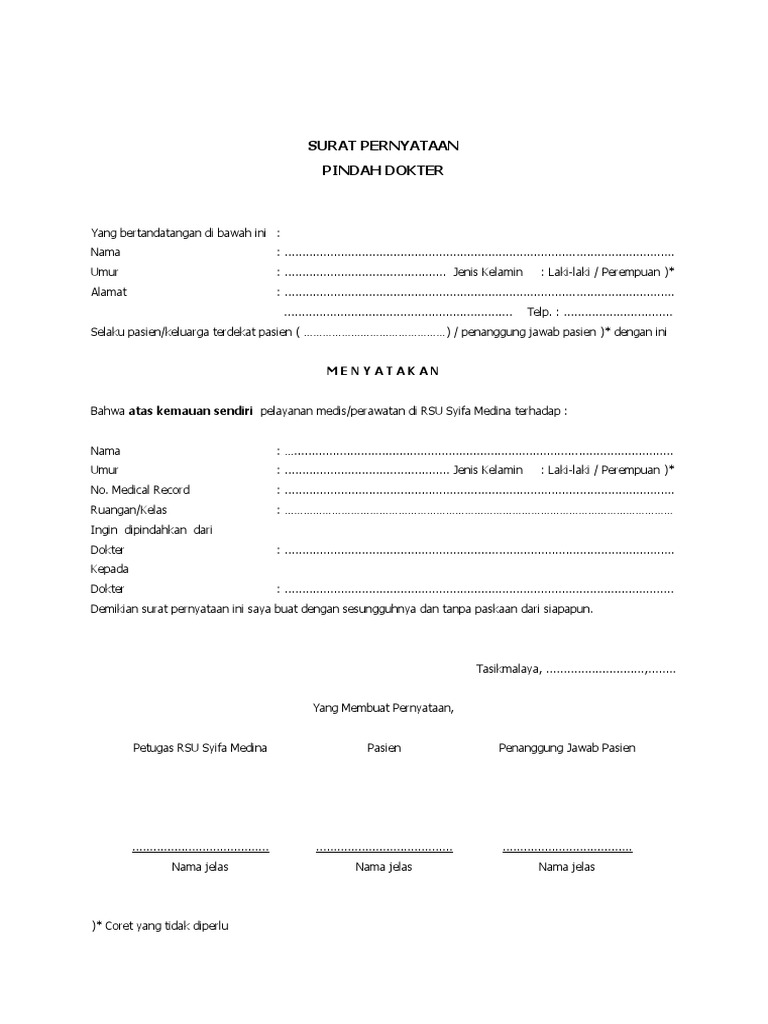 Kemudian untuk pasien pindah transfer kontrol sebaiknya membawa 1. Semoga contoh surat ini dapat melengkapi administrasi anda. Setiap kita bertransaksi di bank specimen sangatlah penting dalam urusan penarikan uang melalui teller. Surat ini merupakan contoh dari surat resmi dimana penulisan dan penggunaan bahasa yang harus sesuai dengan ejaan yang disempurnakan. Adapun keperluan surat dokter biasanya dipergunakan oleh perseorangan atas nama pribadi dan untuk kepentingan pribadi. Kegiatan surat menyurat ini untuk pemberian tugas pelayanan masyarakat dan juga sebagai kegiatan pengarsipan berbagai macam kegiatan yang telah dilaksanan selama periode pemerintahan.