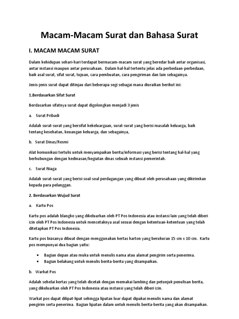 Pengertian Surat Tujuan Fungsi Jenis Bentuk Amp Bagian