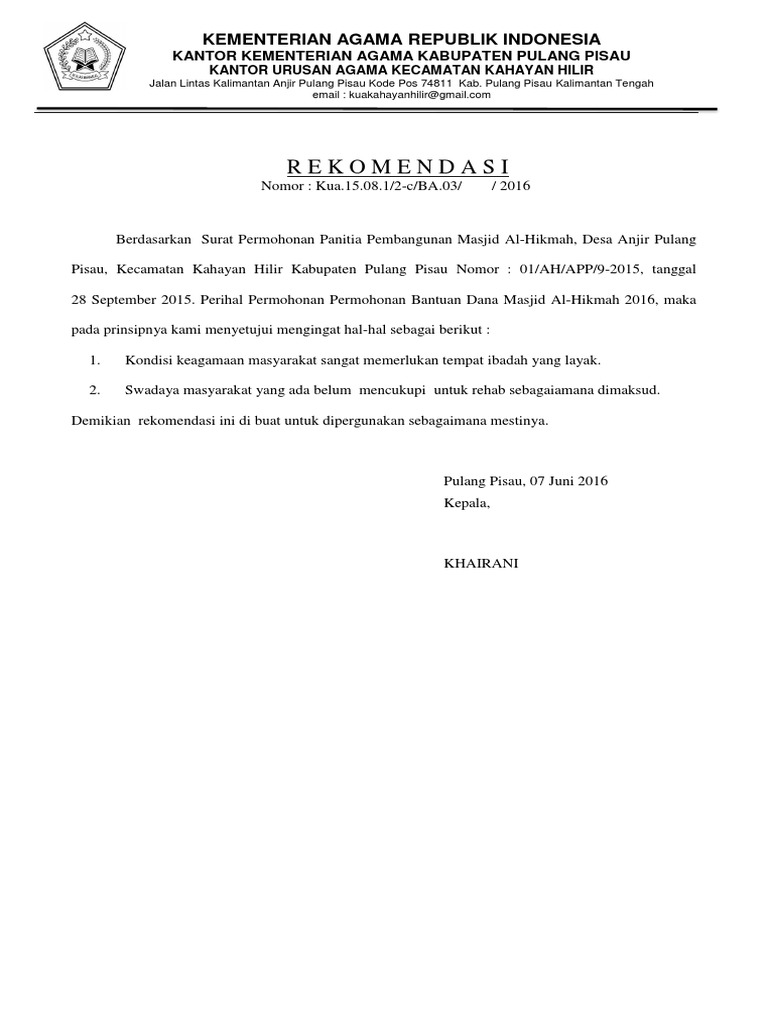 Surat Rekomendasi Kb