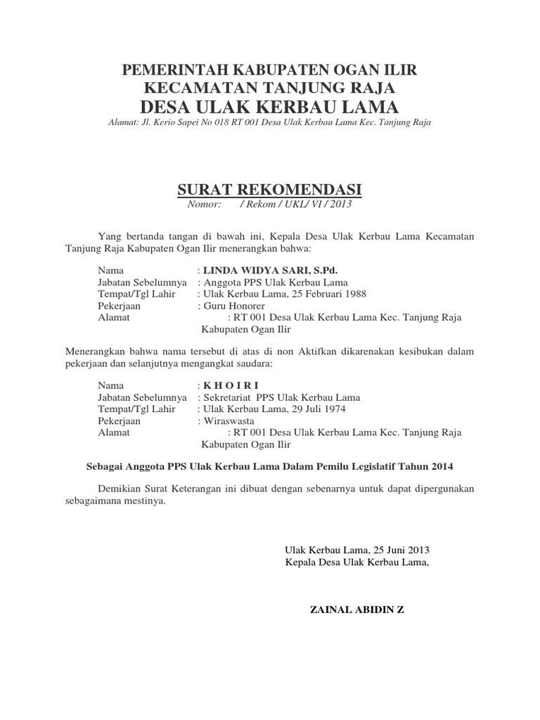 Contoh surat rekomendasi kepala desa untuk pps. 17 contoh surat pribadi untuk kakak teman sahabat orang tua guru 40 contoh kartu nama dengan berbagai desain yang menarik macam macam surat pembaca beserta contohnya di lingkungan pendidikan 15 contoh cv curriculum vitae daftar riwayat hidup terlengkap terbaru 23 contoh brosur dan flyer makanan produk promosi iklan sekolah contoh undangan aqiqah untuk buah hati tercinta anda. Surat rekomendasi ini digunakan oleh calon petugas pps sebagai syarat administrasi dalam rekrutmen pps baik di tingkat kabupaten maupun kota. Contoh format surat rekomendasi pps dari desa atau contoh surat rekomendasi kepala desa untuk sekretariat pps terbaru tahun 2020. Contoh dan format penulisan surat rekomendasi sekolah dari kepala desa untuk persayaratan mengajukan permohonan izin operasional pesantren ke kementrian agama. Download doc surat yang artinya kertas yang bertulis atau secarik kertas sebagai tanda atau keterangan sesuatu yang ditulis. Fakta ini biasanya diisi dengan data sesuai permintaan dari orang yang meminta surat rekomendasi tersebut.