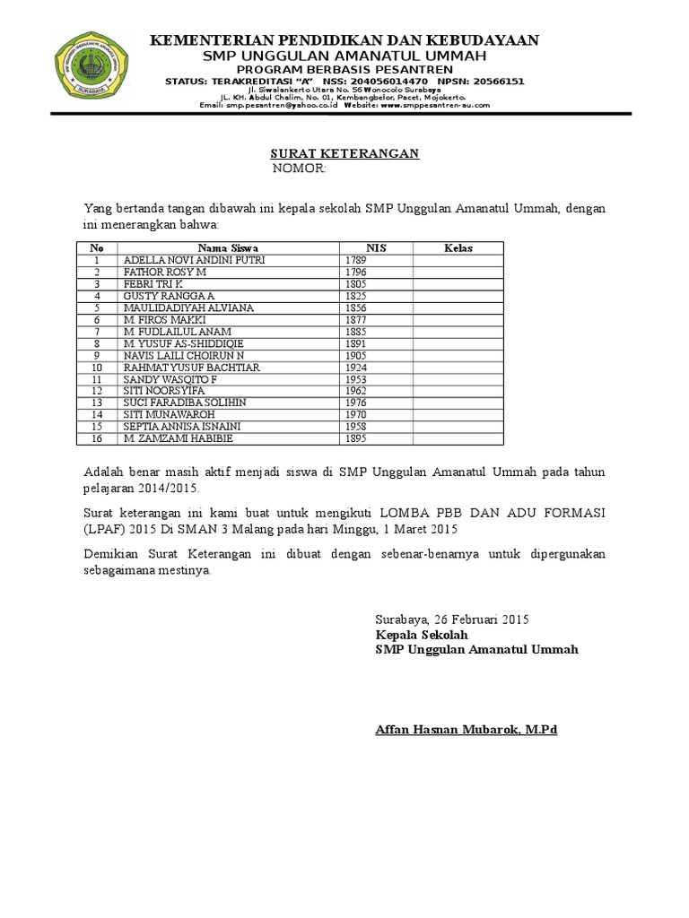 Di saat sekolah mendapatkan undangan untuk mengikuti lomba olimpiade atau turnamen lainnya. Contoh surat rekomendasi dari sekolah untuk mengikuti lomba surat rekomendasi sangatlah bermanfaat bagi orang yang meminta rekomendasi dan juga bagi pihak yang memberi rekomendasi serta pihak ketiga yang akan menggunakannya. Surat izin ini dibuat untuk mendapatkan persetujuan dari pihak kepala sekolah atau madrasah bahwa tim yang akan dikirim atau siswa yang ikut lomba merupakan resmi dari sekolah dan atas. Contoh surat lengkap surat ijin surat lamaran kerja perintah resmi permohonan keterangan undangan dinas niaga jalan dukungan pengantar. Home surat permohonan 90 contoh surat permohonan rekomendasi kegiatan resmi 90 contoh surat permohonan rekomendasi kegiatan resmi seperti halnya surat permohonan yang lainnya surat permohonan rekomendasi kegiatan juga digunakan untuk membuat permohonan dalam bentuk tertulis kepada suatu instansi atau perusahaan agar dapat merekomendasikan acara kegiatan yang akan kita adakan. Bagi pihak yang meminta rekomendasi surat ini berguna sebagai dukungan moral ketika bekerja di tempat yang baru.
