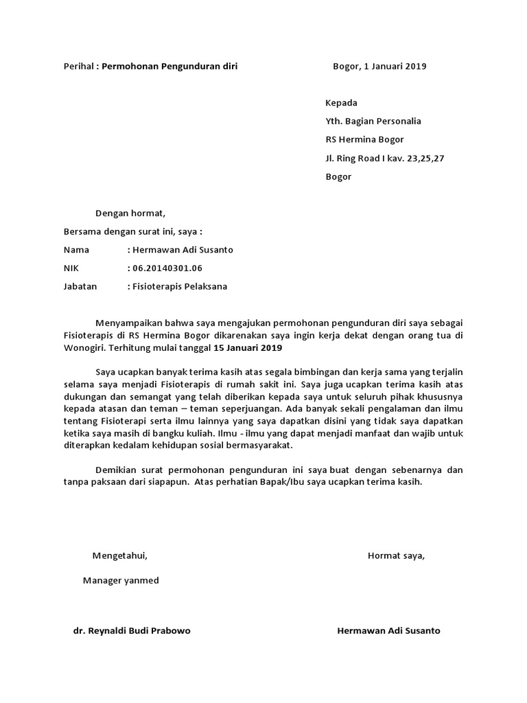 Surat pengunduran dokter biasanya ditujukan kepada manajemen rumah sakit. Contoh surat resign rumah sakit surat resign jika kamu merupakan seseorang karyawan yang sedang bekerja pada perusahaan tertentu dan ingin mengajukan atau melakukan pengunduran artikel terbaru.