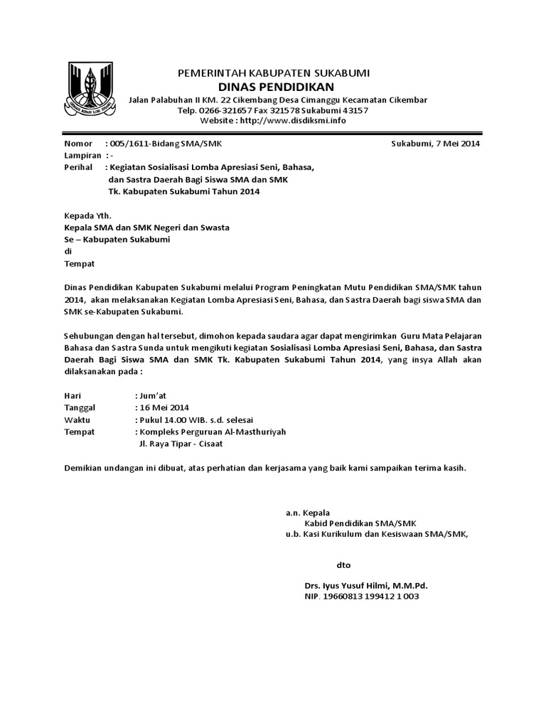 05 50 pamaréntah kota tasikmalaya dines atikan sma negeri 5 tasikmalaya jalan tentara pelajar no. Contoh surat resmi osis bahasa sunda undanganme untuk mendapatkan informasi tentang contoh surat resmi osis bahasa sunda langsung saja klik link ini disini apabila artikel tidak relevan silahkan cari artikel yg relevan pada web ini. Format contoh surat resmi tentang osis dalam bahasa sunda terbaik 2019.