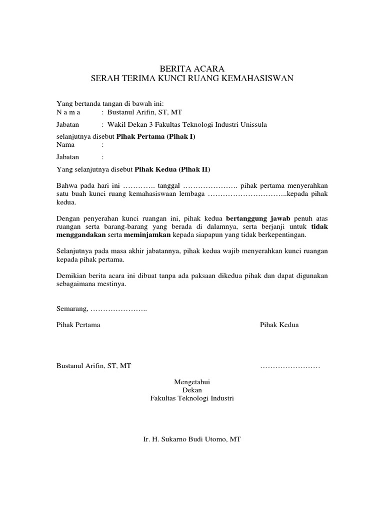 Contoh surat serah terima kunci. Contoh surat pemberitahuan secara resmi nah itulah 3 contoh surat berita acara serah terima barang. The collection that comprising chosen picture and the best among others. Contoh surat tanda terima dan serah terima dalam dunia kerja terutama perkantoran memang tidak lepas dengan dokumen barang dan uang yang selalu membutuhkan surat tanda terima. Contoh surat berita acara serah terima kunci rumah dan bangunan home contoh surat berita acara serah terima kunci rumah dan bangunan by admin on april 1 2020 138 views. Tentunya masih banyak model yang lain namun pada intinya hampir sama. Perlu kita ketahui bahwa surat serah terima ini adalah merupakan salah satu contoh naskah dinas yang berisi pernyataan yang bersifat pengesahan atas suatu kejadian peristwa perubahan stauts dan lain lain bagi suatu permasalahan baik brupa perencanaan pelaksanaan maupun pengendalian kebijaksanaan pimpinan.