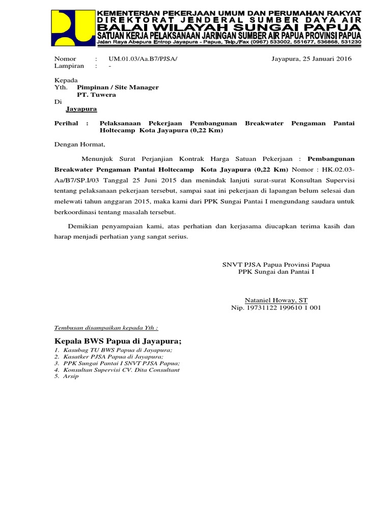 Selanjutnya kami instruksikan kepada kontraktor agar segera memacu pekerjaan untuk mengejar keterlambatan pekerjaan tersebut dengan segera memproses pembebasan lahan dengan masyarakat setempat. Contoh surat peringatan atau teguran yang akan saya berikan di bawah ini pada dasarnya adalah surat peringatan pertama kepada seorang pekerja karena melakukan sikap indisipliner dan melanggar peraturan perusahaan namun pada dasarnya format tersebut dapat anda sesuaikan dengan kondisi yang anda butuhkan saat ini misalnya seperti. Surat peringatan atau bisa juga disebut dengan surat teguran ini biasanya dikeluarkan setelah adanya peringatan secara lisan. Sedangkan surat teguran kepada pihak lain bisa berupa surat teguran untuk membayar pajak surat teguran untuk membayar rekening listrik air telepon cicilan dan lain sebagainya. Biasanya seseorang yang terkena teguran adalah dia yang tidak menaati pada setiap aturan atau tata kedisplinan yang diterapkan didalam perusahaan. Contoh surat teguran dalam kehidupan sehari hari tentu kita pernah ditegur oleh seseorang entah dari keluarga teman dan orang lain.