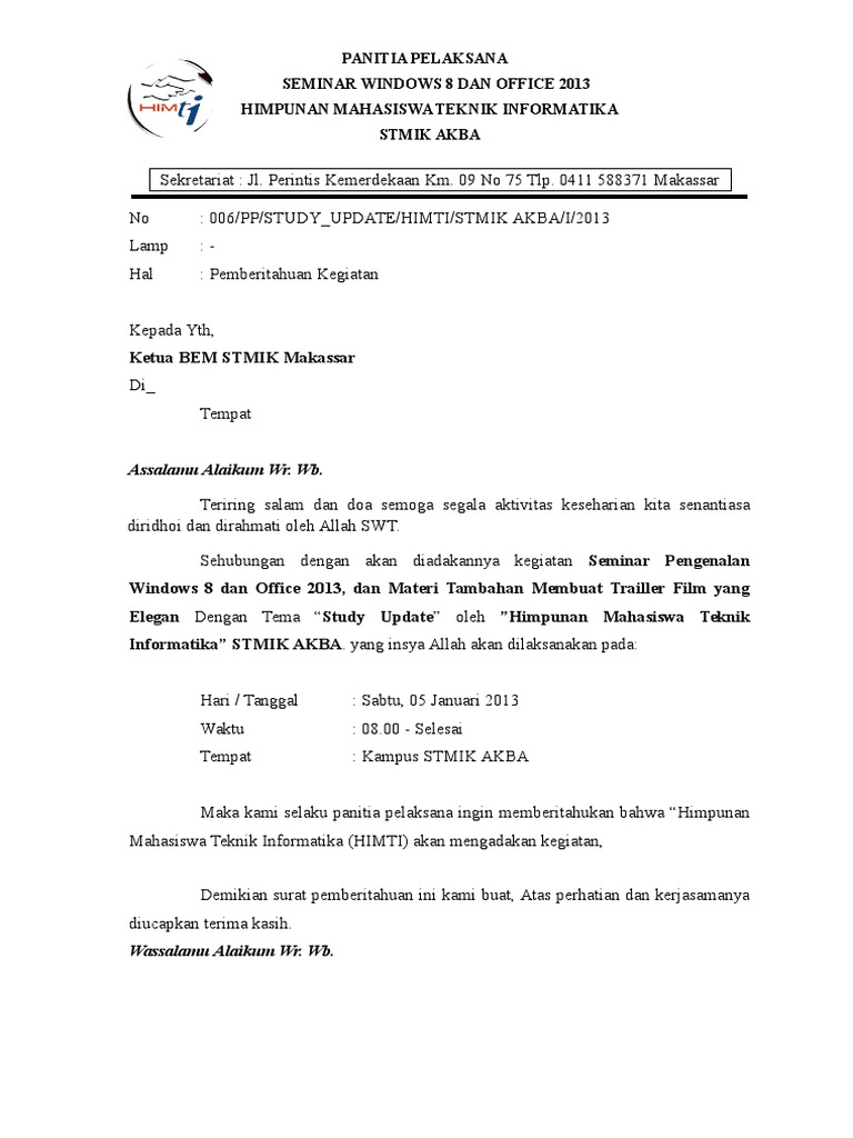 Contoh surat tembusan kegiatan. Contoh surat tembusan kegiatan osis yang merupakan salah satu bentuk surat resmi sebagai referensi membuat surat tembusan yang baik. Surat pemberitahuan untuk membahas suatu hal yang penting anda bisa melakukan kegiatan rapat yang hanya dihadiri oleh pihak pihak tertentu. Contoh surat pemberitahuan setiap instansi sekolah pemerintah desa pemerintah daerah kabupaten pemerintah pusat organisasi komunitas perusahaan instansi pemerintah dan lembaga negara selalu melakukan kegiatan surat menyurat. Semoga setelah membaca artikel ini bisa menambah pengetahuan dan wawasan anda mengenai surat dinas. Surat berikut ini adalah contoh contoh surat pemberitahuan yang dapat di. Diantara banyak surat yang sering masuk maupun keluar adalah surat pemberitahuan.
