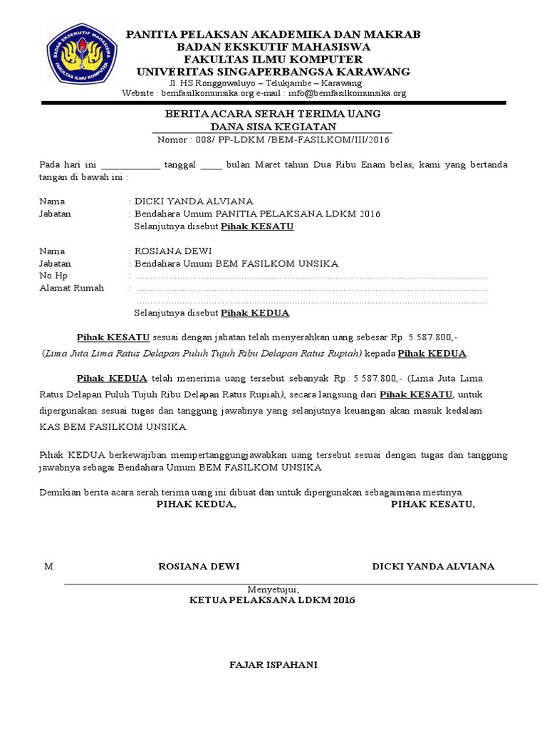 Tanda tangan dalam surat tanda terima uang ini tidak boleh dibohongi apabila. Contoh surat tanda terima berbagai perusahaan badan usaha instansi pemerintahan lembaga maupun organisasi tentu akan sering melakukan serah terima sesuatu. 15 contoh surat tanda terima uang barang dan dokumen berbagai contoh dan jenis surat tentu tidak bisa terlepas dari berbagai kegiatan perusahaan instansi pemerintahan organisasi lembaga dan berbagai kelompok lainnya. Dan untuk itu maka pihak menerima harus menerbitkan surat tanda terima untuk diberikan kepada pihak pemberi. Kali ini contoh surat tanda terima uang barang dan dokumen akan dijelaskan lebih rinci agar anda dapat membuat surat tanda terima sesuai dengan kebutuhan perusahaan atau kantor anda. 2 responses to contoh berita acara serah terima uang irman fsp 26 november 2017 2023.