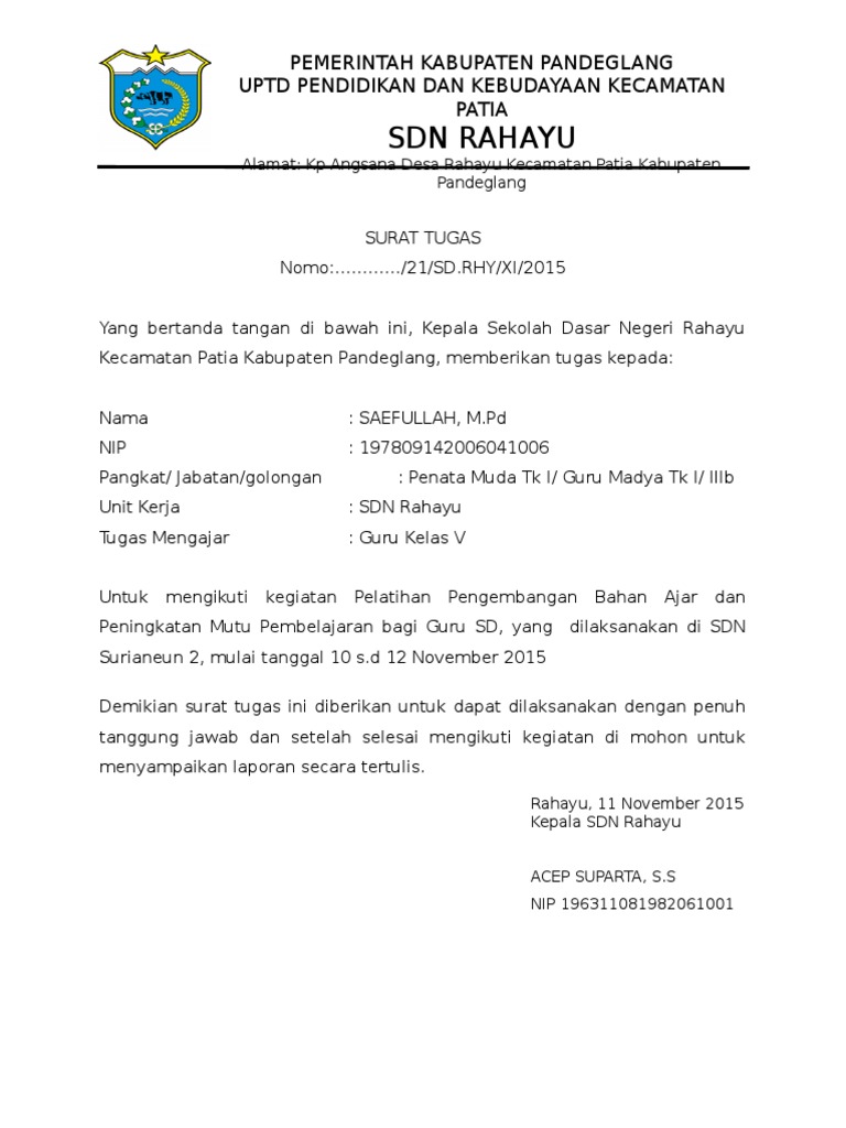Contoh surat tugas mengikuti training. Rabu 19 september 2007. Contoh surat tugas pramuka.