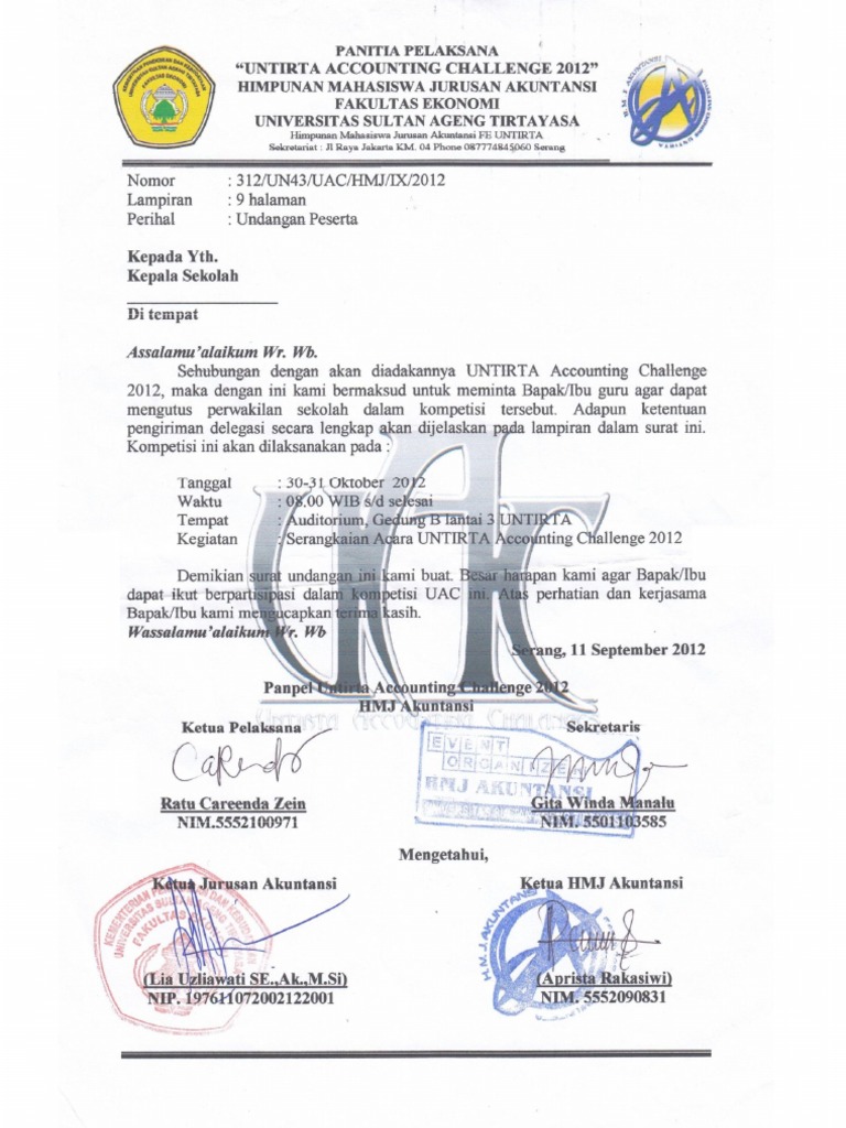 Surat undangan dapat berupa surat resmi maupun tidak resmi. Penggunaan surat resmi sekolah merupakan hal yang wajib bagi sekolah sebagai salah satu lembaga pendidikan. Seperti kegiatan sebuah perlombaan yang diadakan organisasi ekstrakulikuler di sekolah yang dimana sebelum mereka mengadakan perlombaan harus memiliki surat resmi yang akan diajukan kepada kepala sekolah sebagai permohonan dan menerangkan bahwa organisasi tersebut. Surat berikut ini adalah contoh contoh surat pemberitahuan yang dapat di. Dengan berbagai contoh surat yang telah banyak akan membantu kamu untuk mengetahui contoh surat resmi yang baik dan benar. Mulai dari contoh surat dinas sekolah contoh surat dinas resmi contoh surat dinas undangan contoh surat dinas pemerintah contoh surat dinas pendidikan contoh surat dinas osis contoh surat dinas perusahaan contoh surat dinas permohonan dll.