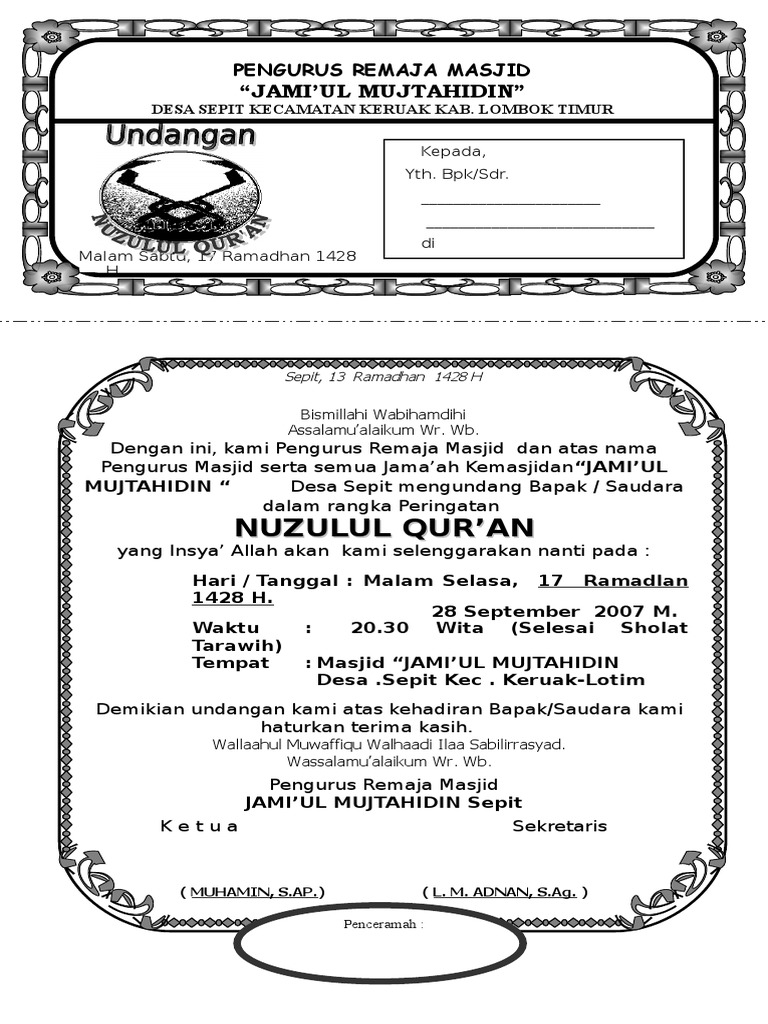 Facebook twitter newer post older post search here. Contoh surat undangan acara nuzulul qur an dan hikmahnya contoh surat undangan acara nuzulul qur an contoh surat undangan acara nuzulul quran contoh surat undangan acara nuzulul al quran contoh surat undangan acara nuzulul al qur an contoh surat undangan a car a.