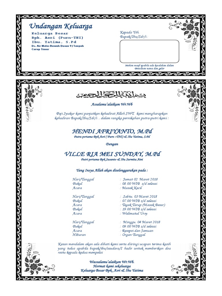 Aneka Sharing Contoh Surat Undangan Untuk Walimatul Urusy