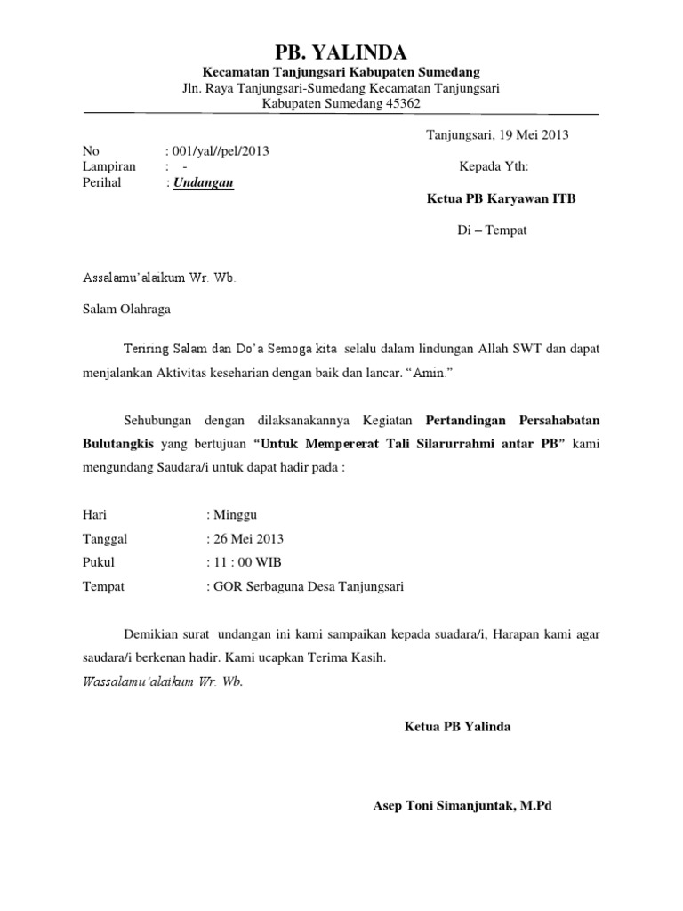Persahabatan adalah dua atau lebih orang maupun kelompok yang saling menghargai dan hidup damai dilingkungannya tidak membuat ulah atau bahkan berkelahi. Contoh surat undangan ikut lomba invitation letter dalam bahasa inggris dan artinya invitation letter for competition hai sahabat kbi. Contoh surat undangan turnamen volly inilah isi lengkap surat dari perpisahan valdes untuk barcelona victor valdes telah menulis surat untuk barcelona dengan mengatakan ucapan selamat berpisah untuk barcelona. Surat undangan dapat berupa surat resmi maupun tidak resmi. Contoh surat dinas pertandingan persahabatan antar sekolah. Semoga bermanfaat dan dapat meningkatkan pengetahuan anda salam.