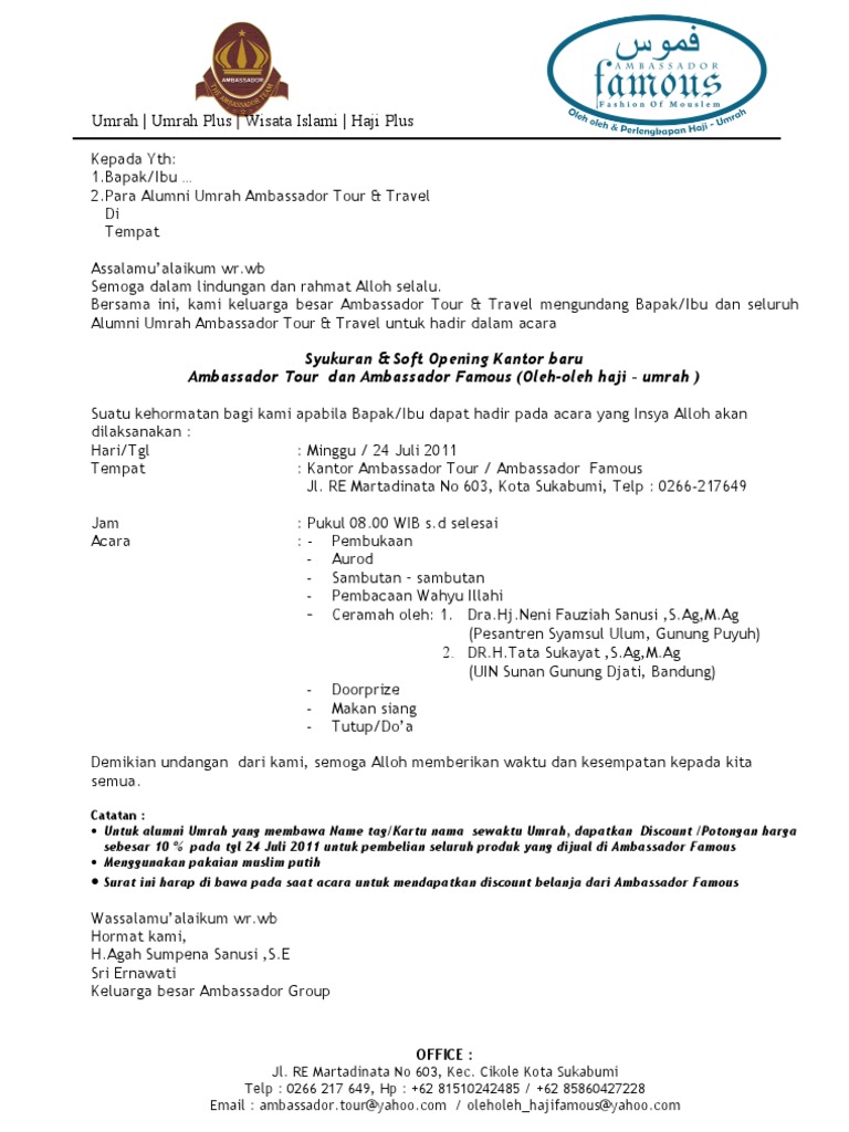 Demi kelancaran dan kenyamanan kita bersama maka panitia mengajak saudari untuk berpartisipasi dalam acara tour bersama alumni man mauk 2009 2010. Fazri wednesday january 01 2014 karang taruna surat. Surat undangan dapat berupa surat resmi maupun tidak resmi. Atas perhatian saudari kami ucapkan terima kasih. Karena kesalahan informasi dapat berimbas pada tidak datangnya undangan pada acara yang diadakan. Nama serta alamat pihak yang dituju di bagian ini cantumkan nama dan alamat pihak yang akan kamu undang dalam kegiatan secara lengkap dan jelas.