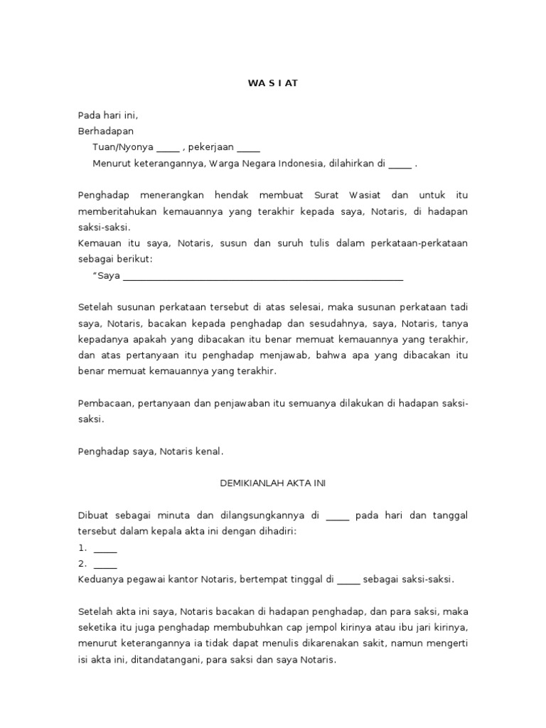 Contoh surat wasiat wasiat pada hari ini rabu tanggal satu bulan dua tahun dua ribu sebelas 01 02 2012 telah berhadapan dengan saya natalia sh notaris berkedudukan di surabaya. Contoh surat kuasa penandatanganan akta notaris apabila kita berhalangan hadir dalam suatu kegiatan yang membutuhkan kekuatan hukum maka kita bisa memberikan kuasa pada orang yang kita tunjuk dengan cara membuat surat kuasa diatas kertas bermaterai. Demikian surat kuasa ini dibuat dan. Pemilik warisan akan menunjuk secara langsung ahli waris yang diinginkannya. Contoh format surat wasiat harta warisan harta warisan merupakan salah satu hal yg umum dipermasalahkan didalam setiap keluarga karena hal tersebut menyangku. Surat keterangan ahli waris merupakan surat keterangan yang isinya adalah pernyataan bahwa pihak pembuat surat keterangan ahli waris tersebut memang benar benar berhak atas segala sesuatu yang diwariskan oleh seseorang.