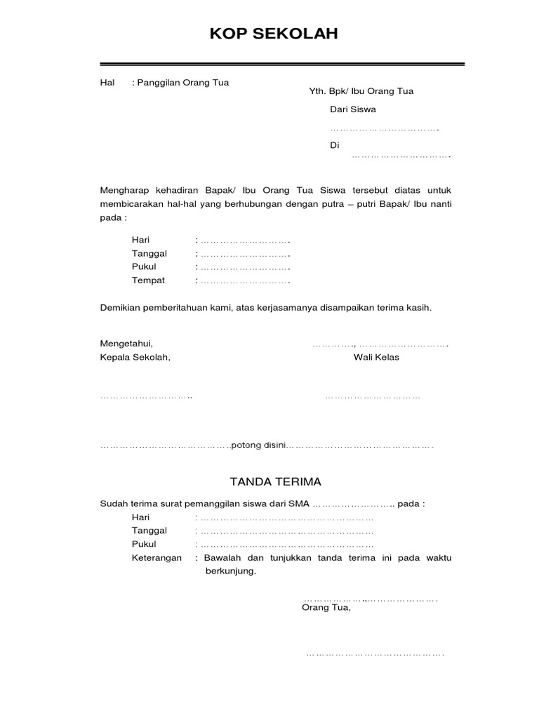 Contoh biodata untuk melamar kerja terbaru lengkap. Download contoh surat panggilan orang tua dari sekolah karena bermasalah. 0295 0001111 pati 11 januari 2018 nomor. Saat seorang siswa mendapat permasalahan di sekolah maka pihak sekolah memanggil orang tuawali murid dengan surat panggilan yang diberikan kepada orang tua siswa yang. Saat seorang siswa mendapat permasalahan di sekolah maka pihak sekolah memanggil orang. Yang terhormat bapakibu wali murid kelas vii smp n 1 ronggo di tempat dengan hormat berdasarkan hasil rapat orang tua wali pada tanggal 10 januari 2018 yang lalu smp n 1 ronggo tahun ajaran 20172018 akan mengadakan acara study tour yang wajib diikuti oleh seluruh siswa kelas vii.
